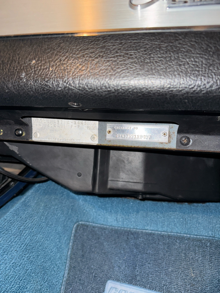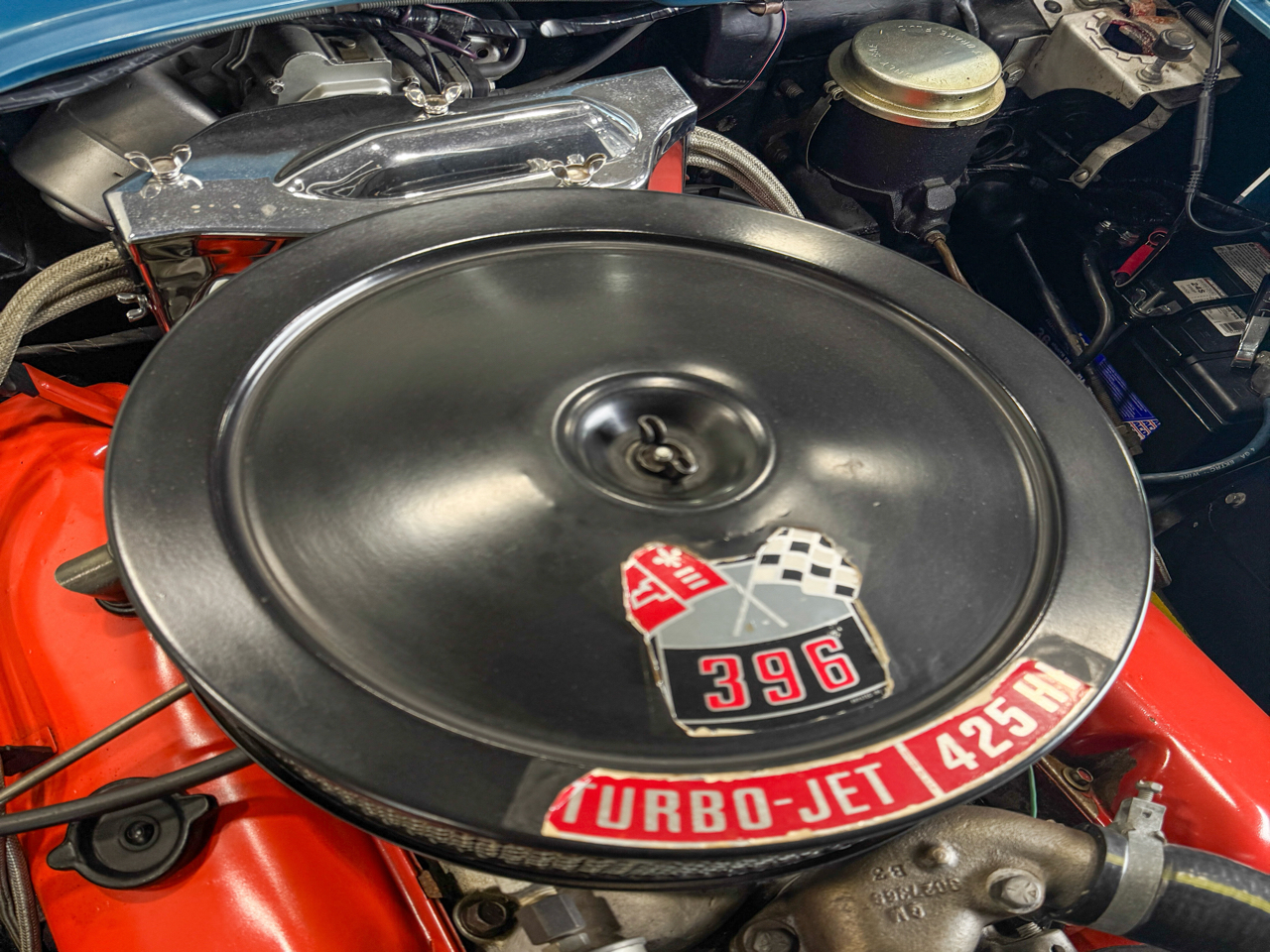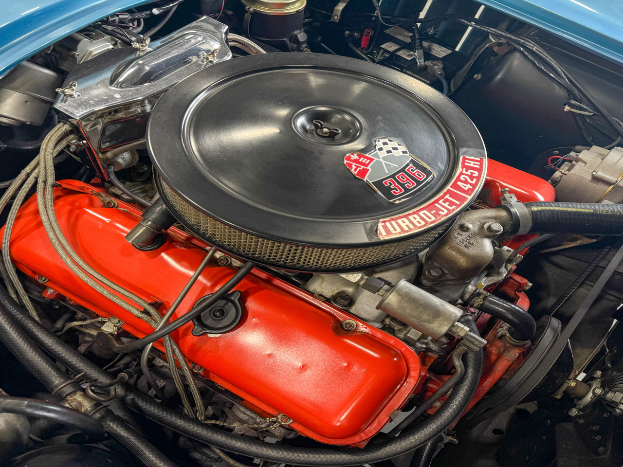 Gussets are present. Casting (T0518IF) 5119497 and casting number (3855962) on the block are present. Rear end 4:11 ratio. Transmission case with VIN stamp and all original restored drivetrain car. Sounds amazing - ask for startup video. I have ~40 more photos of the body off restoration. • Beautiful restoration (see picture example in photo #15 and feel free to ask for more examples) • Nassau Blue - Beautiful blue paint that pops outside in the sun and also looks great inside (see photos) • Everything works (click, lights, headlights, gauges, etc.) • numbers matching L78 Corvette 396 Turbojet V8 / 425 HP