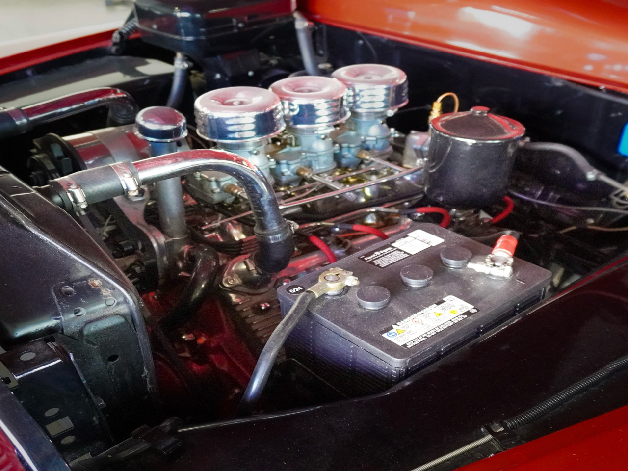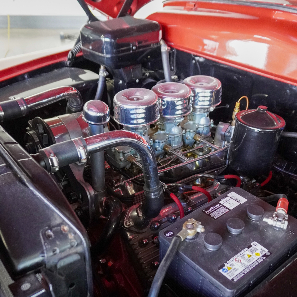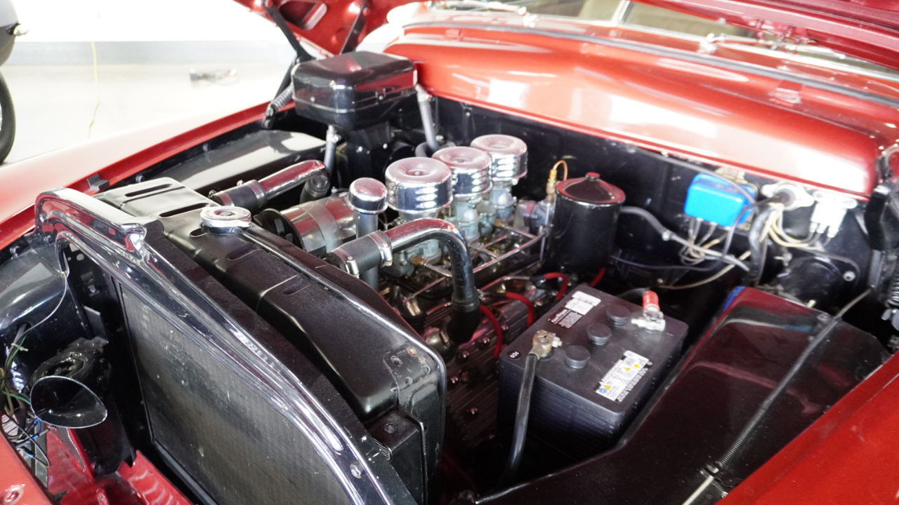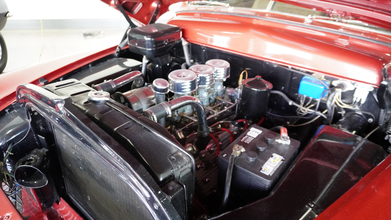 • Equipment and features includes six-barrel Stromberg induction, Offenhauser cylinder heads, an Offenhauser intake manifold, Fenton exhaust headers, electronic ignition, fender skirts, and a heater/defroster. True mileage unknown (TMU)